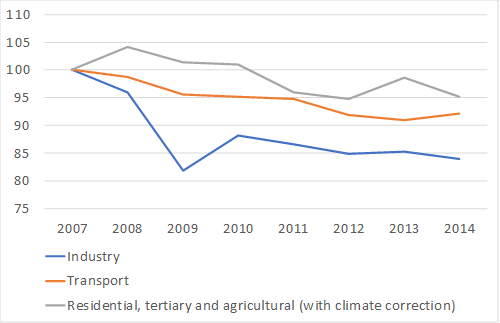 Figure 2: Final energy consumption in EU28 (2007=100)