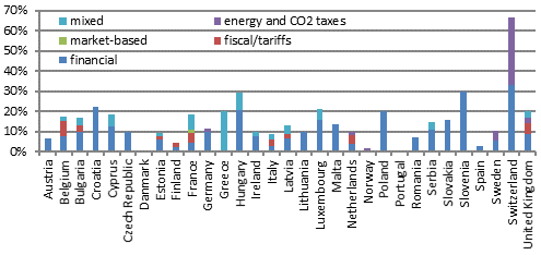 Figure 3: Financial, fiscal-tariffs, market based and taxation measures by country in households and services sectors (%)